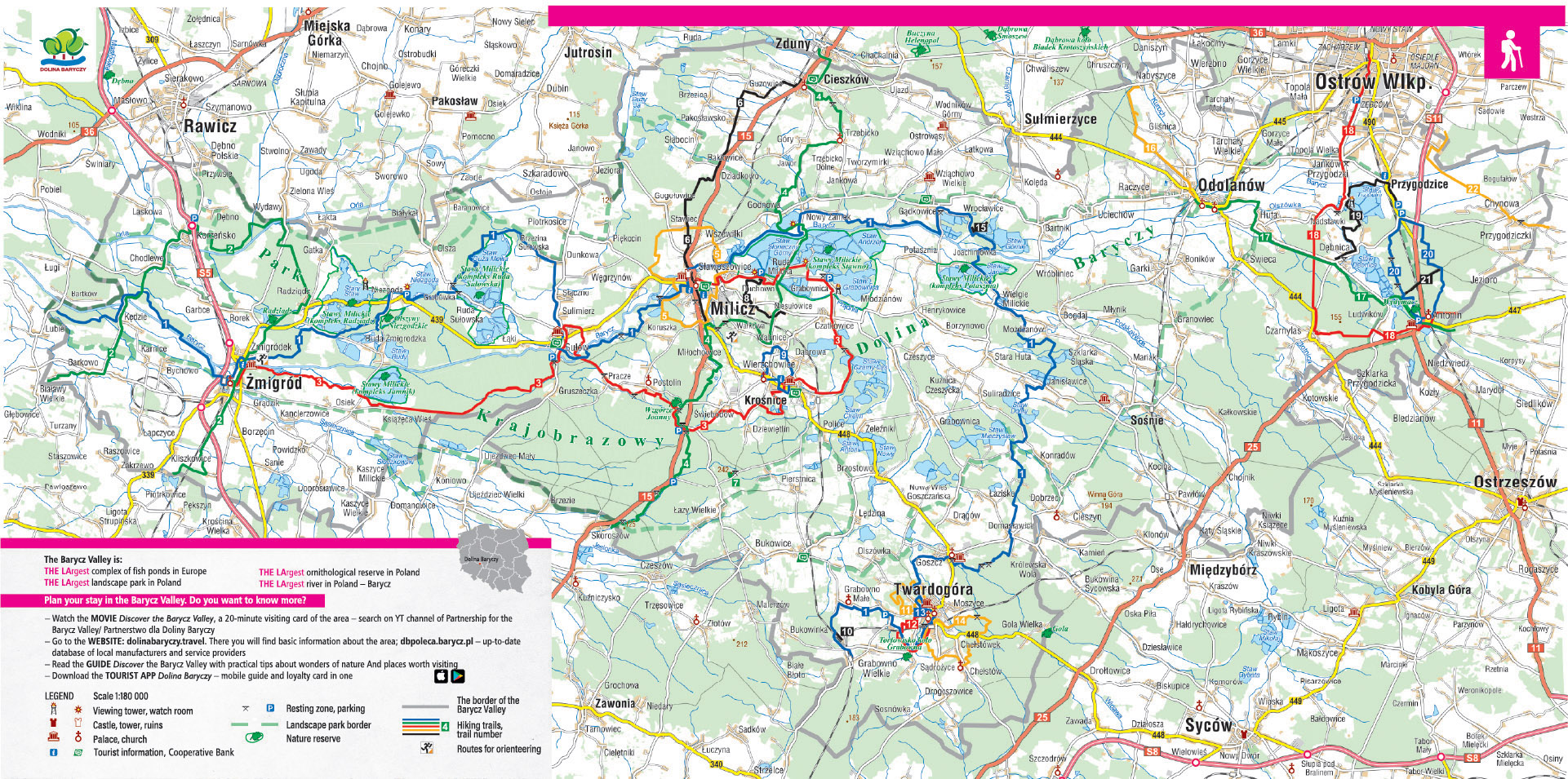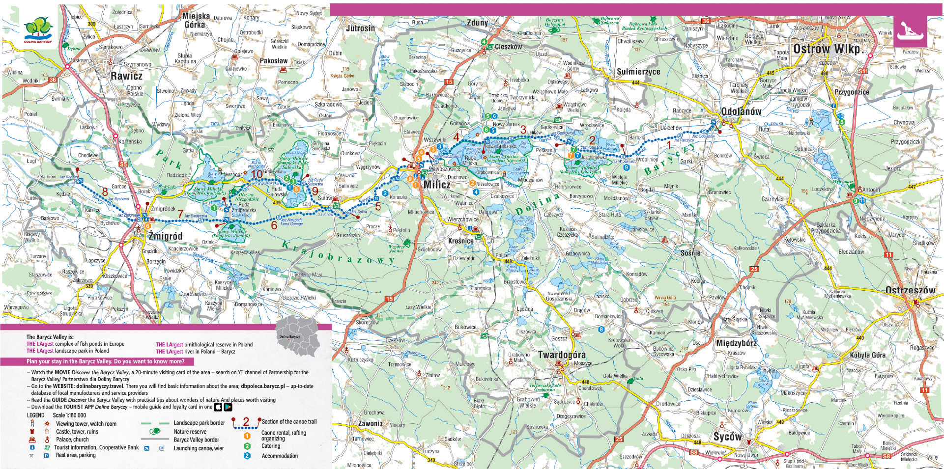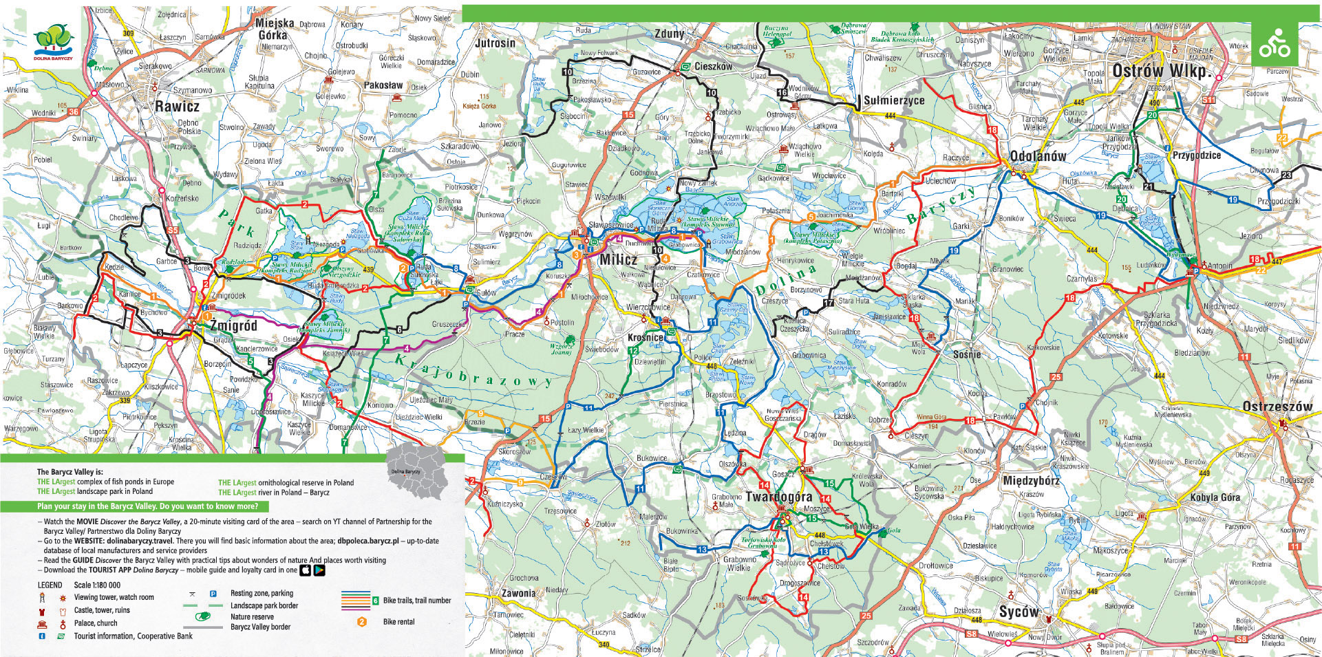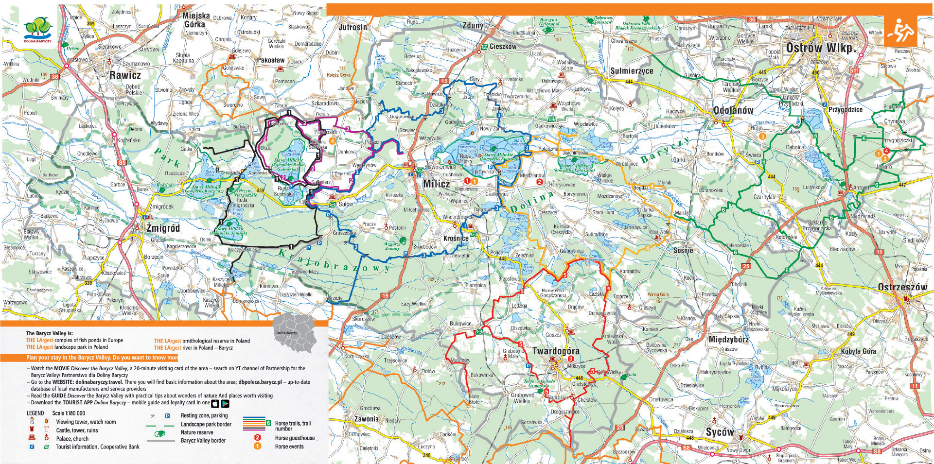 The Barycz Valley offers tourists as many as 1,800 km of routes - cycling, hiking, canoeing and horse riding. The trails run through the most interesting corners of the region. In order to experience all these rarities, one can follow local roads with little traffic, picturesque forest or field routes, which lead through vast meadows, between villages and in the vicinity of towers and birdwatching chalets. Experts say that the Barycz Valley is an area made for active walking.